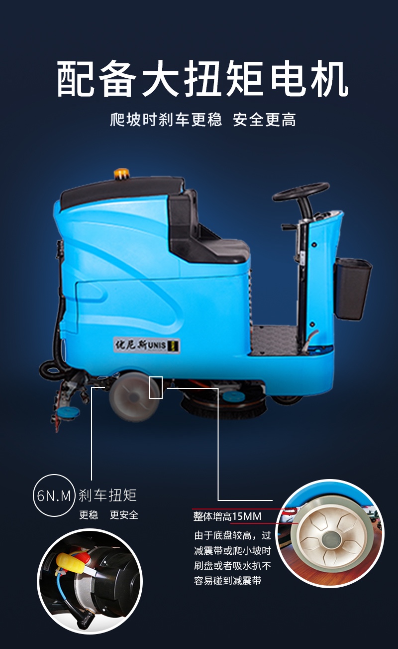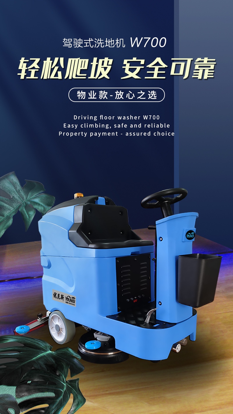 优尼斯W700小型驾驶式洗地机|物业保洁电动拖地机|洗地车